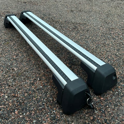 Volvo XC40 (sopii myös P8) kattotelineet. Ehkä 5v vanhat ja 5 joulukuusta nähneet. Eli aikalailla hyvässä kunnossa ja vähän käytetty. Lukot päissä ja avaimet löytyy. Ei sovi EC40-malliin tai C40:een.