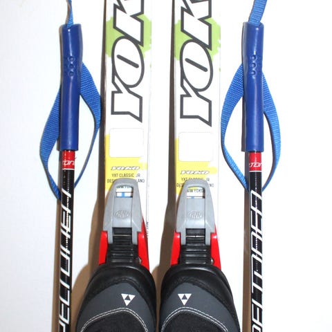 Suksisetti on hyvänkokoinen noin 90 cm-100 cm pituiselle lapselle.