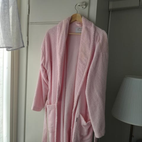 Myyn kevyen (pehmoisen puuvillaisen) kylpytakin, koko: L, 5 e, punainen - ilmainen (myös puuvillaa), molemmissa kylpytakeissa erittäin mukava materiaali.