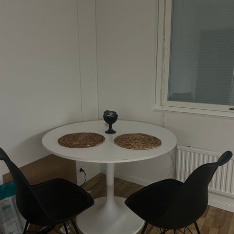 Ikea PINNTORP taitettava ruokapöytä ja Jysk KASTRUP ruokapöydän tuoli 2 kpl yhteishintaan 130€. Myynnissä myös muualla.