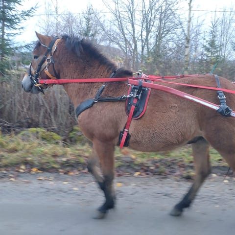 Osaa myös ajohommat. Meillä ajettu kärryjen lisäksi myös reellä. On innokas, mutta pysyy hyvin hyppysissä.