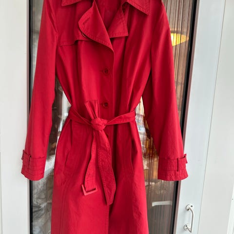 Myydään punainen käyttämätön takki. Merkki B. Young. Polyesteria ja villaa. Koko 44.