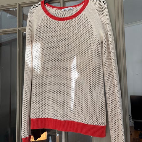 Sandro-merkkinen tummansininen pitkähihainen, joka on 100% villaa. Jäänyt itsellä käyttämättömäksi. Materiaali on hiukan läpikuultavaa. Koko M, mutta mahtuu hyvin myös L-kokoiselle.