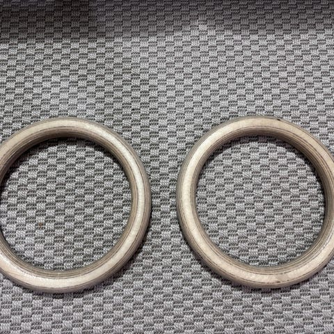Puiset Suomen Voimistelutuotteen voimistelurenkaat, joissa on kestävät 8 metriä pitkät kangasremmit. Renkaat ovat aikuisten kokoa n. 23,5 cm halkaisijaltaan, joten sopivat yli 5-vuotiaille. Mukaan tulee myös valkoiset kattokiinnikkeet. Renkaat soveltuvat esimerkiksi voimisteluun ja harjoitteluun kotona tai salilla. Pitkuen remmien ansiosta käyvät hyvin korkeaankin tilaan.