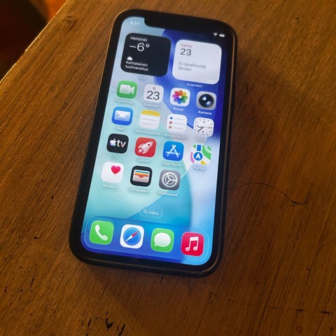 Siitä kerkeisi vielä pukinkonttiin Apple iPhone 12 mini älypuhelin, jossa on 64 GB tallennustilaa. Akun kunto on 78%. Pieniä kolhuja rungossa ja tavallista kulumaa näytössä(ei halkeamia). Ei sisällä laturia. Mukaan useita suojakuoria ja panssarilaseja.