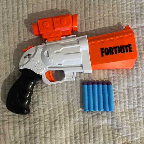 Myydään iso Nerf fortnite pyssy ja toinen nerf pyssy. Panokset puuttuu. Yhteensä 10 euroa