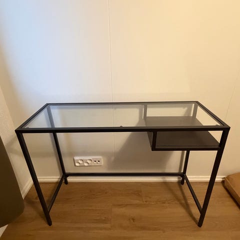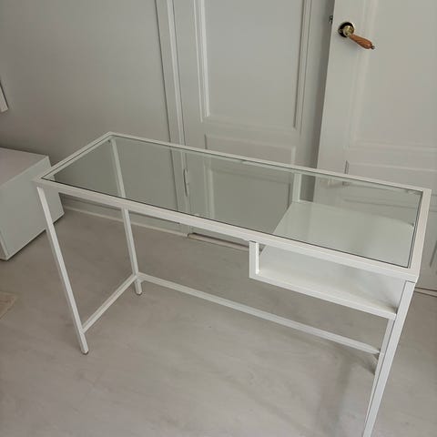 Pöydän lokeron levyä ei ole kiinnitetty eikä ruuveja tallella. Nouto Helsinki Malmi.