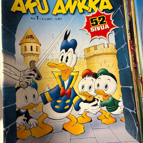 Hyväkuntoinen Aku Ankan vuosikerta 2017. Llisänä Joulumanteli 2016. Nouto Katajanokalta tai Tori Diilinä.