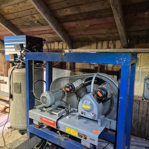 Myydään kuvien mukainen kompressori ja kuivain. Kompressorin kapasiteetti konekilven mukaan 5 m3/min ja maksimi paine 7.5 bar.