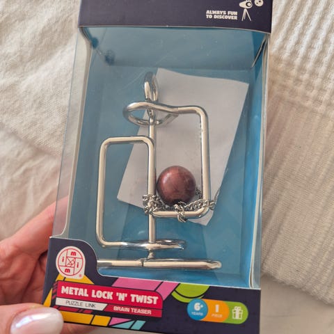 Huzzle Cast Marble on metallinen pulmapeli, joka sisältää erilaisia haasteita ja vaatii loogista ajattelua. Kolme eri tuotetta. Love = helppoa, O´gear = keskivaikea ja Marble = tosivaikea. Hinta 10e per pulmapeli, Alkuperäisissä pakkauksissa.