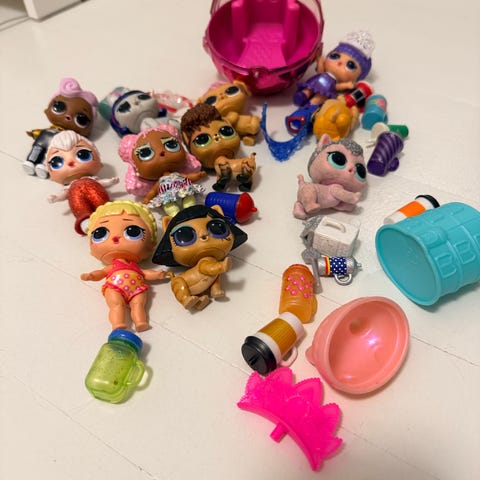 Myydään LOL Surprise -setti, jossa tulee kerralla paljon leikkeihin sopivaa tavaraa: kalusteita, asusteita, kenkiä sekä hahmot.