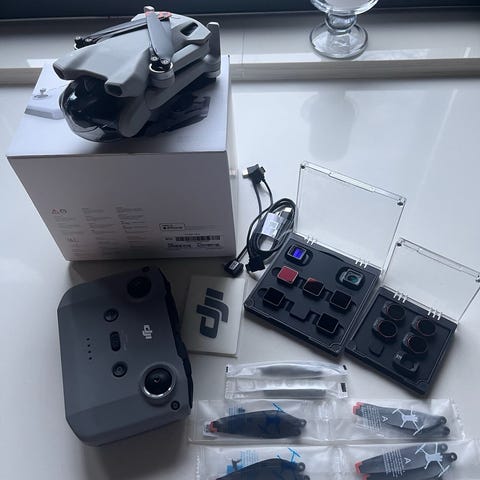 DJI Mini 3 Pro drone harmaa kuljetuskotelolla, RC-ohjain, fly more