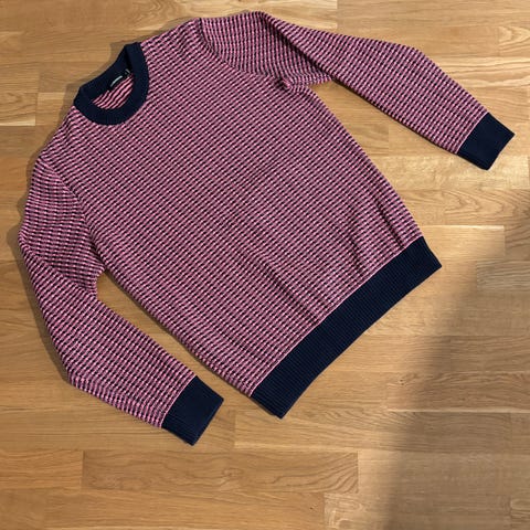 Sininen J. Lindeberg puuvillaneule. Malli M heavy cotton structure. Koko S. Kai-kai 58 cm ja olka-helma 72 cm. Kunto erinomainen.