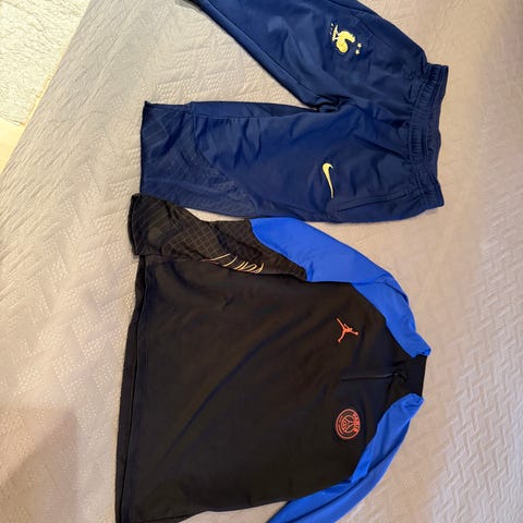 Verryttelyhousut 158-170cm, kunto muuten erinomainen, mutta toisesta lahkeesta taitteen ommel pitää ommella, purkaantunut.