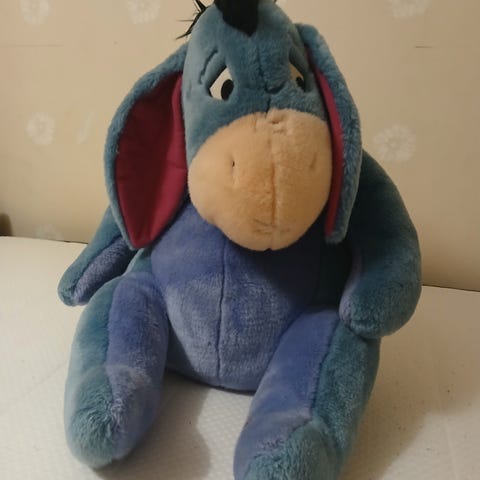 Iso istuva Ihaa pehmo Nalle Puh -sarjasta, korkeus noin 45cm.