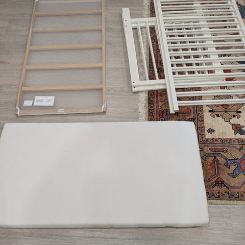 Useamman vuoden vanha, mutta toimiva pinnasänky! Maalikulumaa siellä täällä, on paikkamaalattavissa. Mukaan pari vuotta vanha Ikean yhteensopiva patja ja sivulaita. Laidan saa laskettua ja mielestäni ruuveja siihen on riittävästi. Tarvittaessa voi tilata lisää Ikealta.