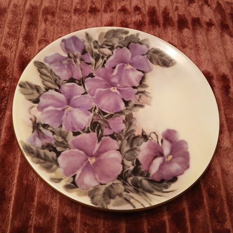 Virheetön Romanttinen puutarha -sarjan nro I Orvokki seinälautanen, halkaisija 19,5 cm.