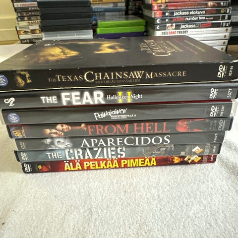 Kahdeksan lähinnä vanhempia kauhuleffoja yhteishintaan. Levyt ok, en nähnyt naarmuja.