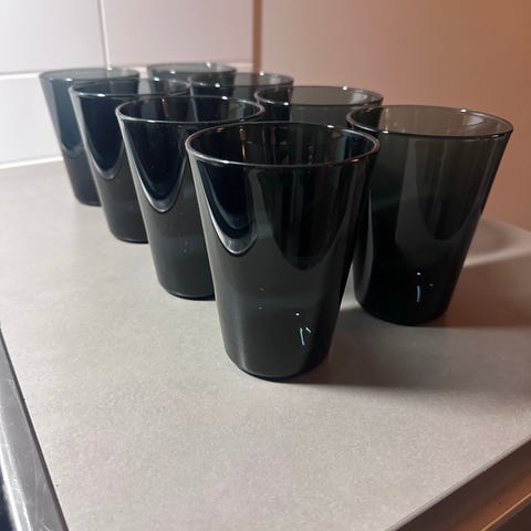 3 pakettia, 6 kpl Iittalan uusia harmaita kartio 21cl juomalaseja.