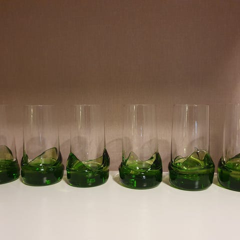 Oikein siistit ja hyväkuntoiset Humppilan Lasin Kievari snapsi/liköörilasit. Lasien korkeus on 10 cm. Näitä löytyy 5 kpl ja hinta on yhteishinta. Yhden lasin reunassa on "valuvika" joka on todennäköisesti jo tullut tekovaiheessa. Se ei ole rikki.