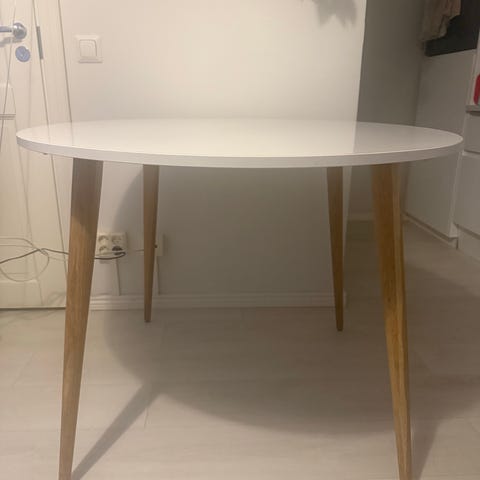 Myydään pyöreä ruokapöytä uuden tieltä. Kannessa käytön jälkeä, itsellä ollut pöytätabletit niin jäljet jääneet piiloon.