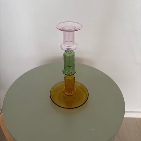 Kuparisen sävyinen design kynttilänjalka. Sävyssä värjäymää/kulumaa.
