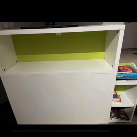 Kaapissa tarroista jälkiä, tussia jne. Sivut ja päällinen siisti. Ovet saa maalaamalla kuntoon.