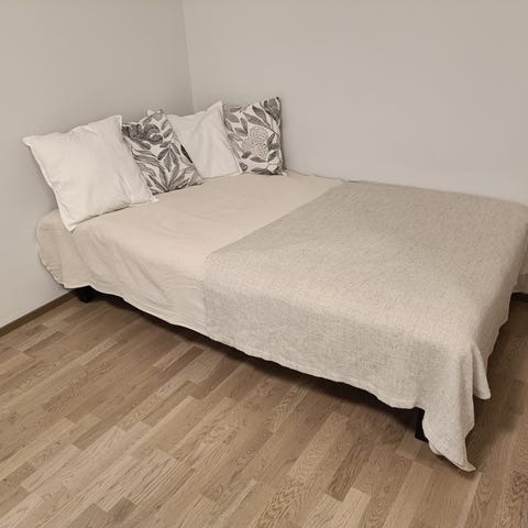 Lapsen käytössä ollut laadukas sänky pois parvisängyn tieltä. Mukaan myös petari.