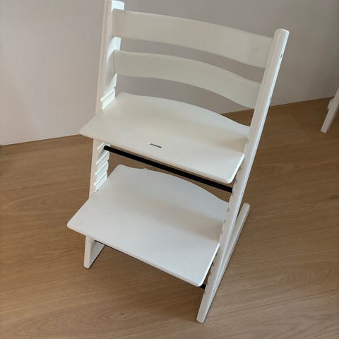 Uusinta mallia oleva valkoinen tripp trapp stokken tuoli. Sopii 0v eteenpäin. Hyvässä käytetyssä kunnossa. Kaikki lisävarusteet sopii tuoliin.