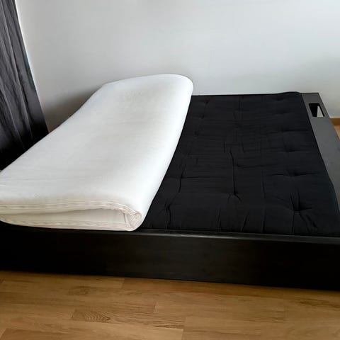 Uudenveroinen Karup Senza sängynrunko (ostettu Vepsäläisestä keväällä -25) ja Mulperipuun laadukas futon-patja (ostettu samaan aikaan).