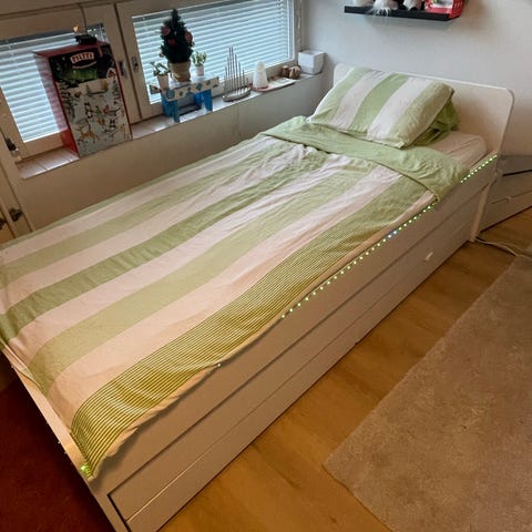Ikea Släkt -sänky, alasänky, laatikot patjat sekä turvalaita