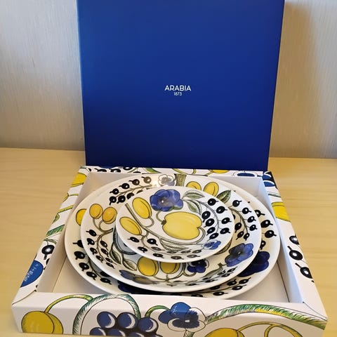 4 kpl. Vanhaa tuotantoa eli Suomessa valmistettu. Nämä ovat niitä isompia, jotka käyvät teekuppien alle tai kahvikuppien kanssa pullalautaseksi.