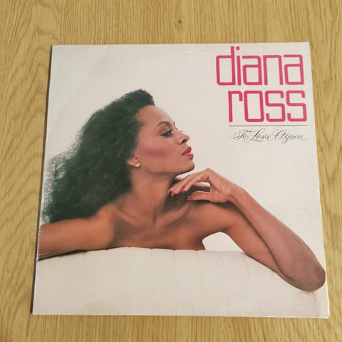 Diana Ross Ross LP-levy, jossa on klassinen kansitaide ja sisältö. Levyn kansi on punainen ja siinä on artistin kuva. Takakannessa on luettelo kappaleista ja muita tietoja. Nouto Kalasatamasta tai sovitusti muualta!