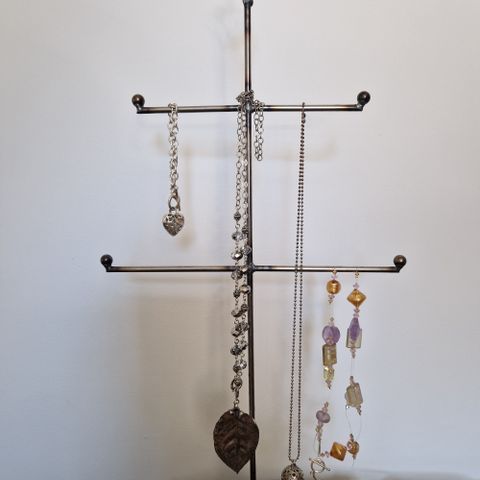 Metallinen teline halkojen säilytykseen. Teline on ilmeisesti tehty mittatilaustyönä, tukeva. Korkeus noin 150 cm, leveys noin 64 cm, syvyys noin 40 cm.