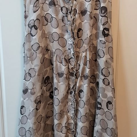 Myydään kaunis Masain mekko / tunika, jossa tulppaanimainen helmassa, sivussa taskut. Miellyttävä joustava materiaali, väri musta-valkoinen. Koko S ( kainalosta kainaloon 42 cm, olka-helma 90cm). Hinta 25 euroa, lähetettynä 32 euroa tai toridiili