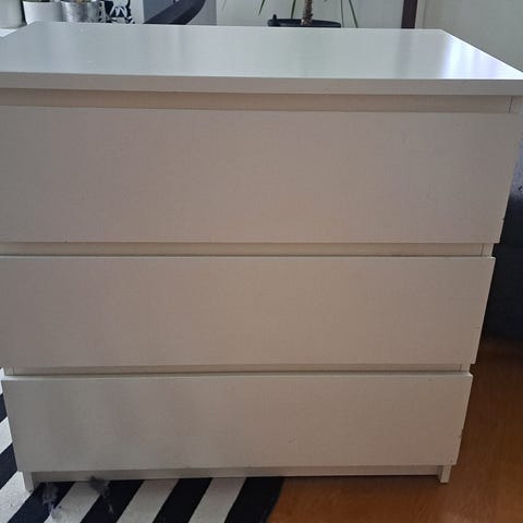 Valkoinen ikea malm lipasto, mistä ensimmäinen vedettävä lokero rikki. Annetaan ilmaiseksi ja omat kantajat mukaan!