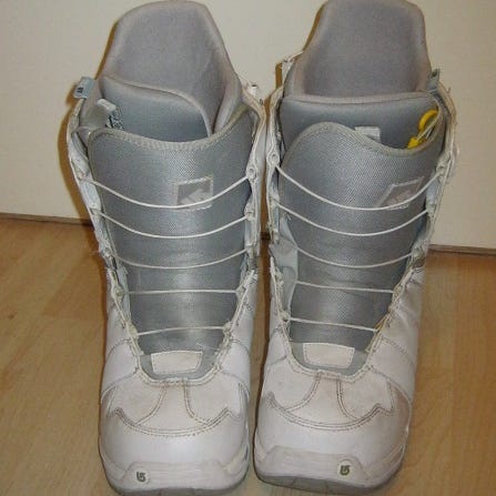 Laadukkaat Burtonin lumilautakengät (Burton on yksi arvostetuimpia lumilautailu kamppeiden valmistajia). Kokomerkintä on 40, kenkien sisämitta on 25 cm. Kengät ovat väriltään lilan väriset eli eivät ole vaalean siniset kuten kuvista voisi päätellä. Muuten ihan hyväkuntoiset ja siistit kengät mutta ainut miinus on se että kenkien ulkopintojen väriä haalistanut lumilautasiteet muutamista kohdin (pelkkä kosmeettinen seikka ja nuo kohdat jäävät hyvin piiloon lautaillessa kun kengät ovat lumilautasiteissä kiinni, värin haalistuminen otettu hinnoittelussa huomioon ). Hinta 90 e