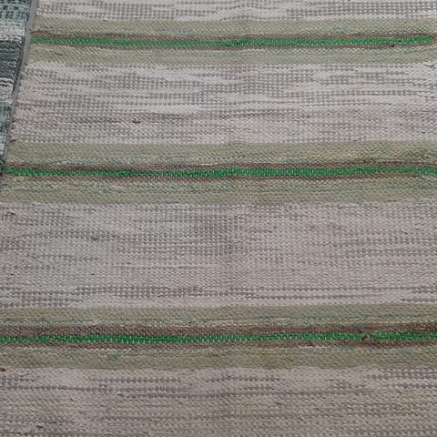 Puhdas konepesty muovinen räsymatto. Vaaleansininen/valkoinen. Tuoksuu pesuaineelta. Yksi tahra, lähinnä loimessa, mutta saattaa lähteä jos harjalla pesee, osa lähti ihan rapsuttamallakin. Koko 77 cm x 280 cm. Nouto Porvoo tai lähetys jolloin postituskulut ostajalle. Ei toridiiliä!