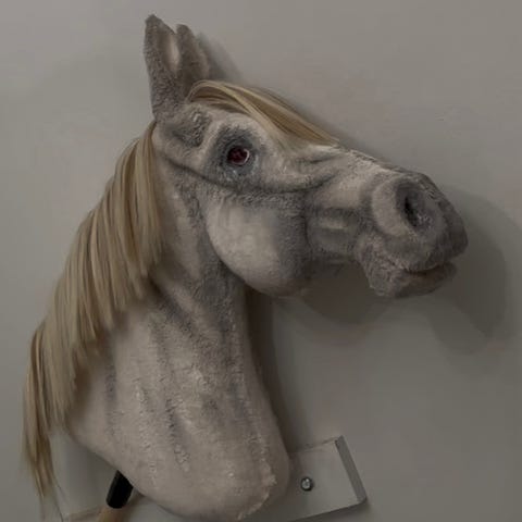Harja on keinokarvaa ja silmät itse maalattua lasia