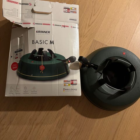 Joulukuusen jalka. Helppo kiinnitys, kuusen jalassa rulla mitä voi pyörittää jalalla. Kiristää joulukuusen jalan paikalleen.