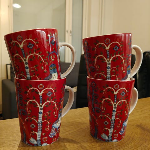 Hyväkuntoiset ja ehjät mukit, vähäisellä käytöllä ollut.