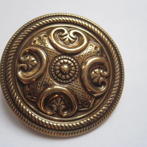 Kalevala Korun Loviisa - solki / rintaneula pronssia. Soljen halkaisija 3,5 cm.