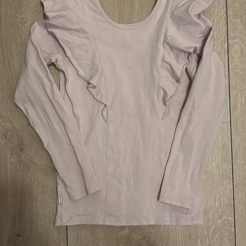Gugguu lila frillapaita kokoa 116. Paljon käytetty, mutta vielä mielestäni kelpo paita seuraavalle. Tässä paidassa hihojen päissä hieman likaa, ja edessä pieni tahra, jonka tiiraillessani huomasin.