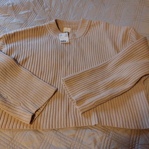Raidallinen Jackpot neule. Vaalealla pohjalla tummat raidat. Kuin uusi