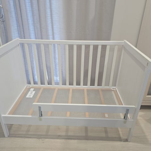 IKEA pinnasänky, valkoinen väri, valmistettu puumateriaalista. Sänky sisältää kaksi säilytyslaatikkoa alareunassa. Soveltuu lastenhuoneeseen pienille lapsille.