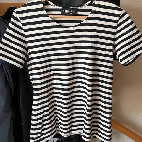 Marimekon musta-valkoinen raitapaita venekaula-aukolla L koossa.