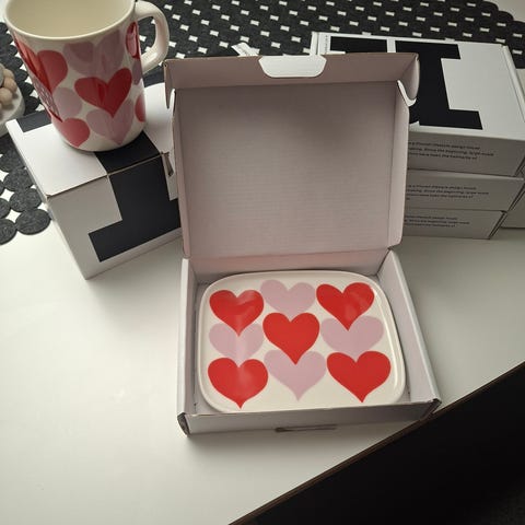 Myydään Marimekon Sydämet lautasia 2kpl, koko 12*15cm. Hinta 2 lautaselle 32€.