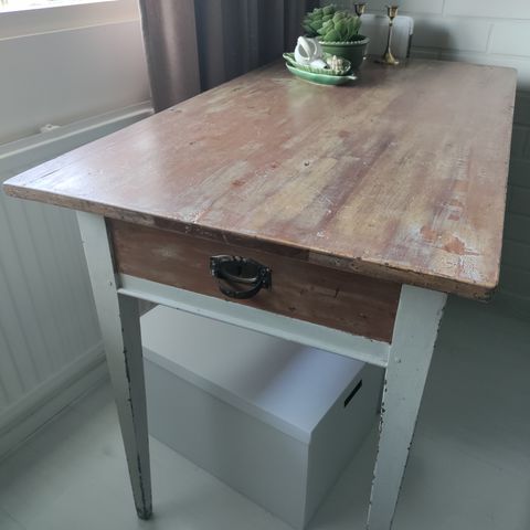 Saa kahteen osaan. Reunassa kauttaaltaan kulumaa, helposti fiksattavissa, huomioitu hinnassa. Pöytäliina kaupan päälle.