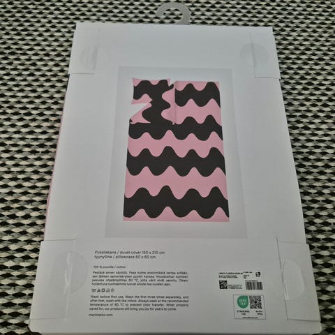 Yhden yön käytössä ollut puuvillainen Lokki tupla pussilakana. Oli omaan peittoon väärän kokoinen.
