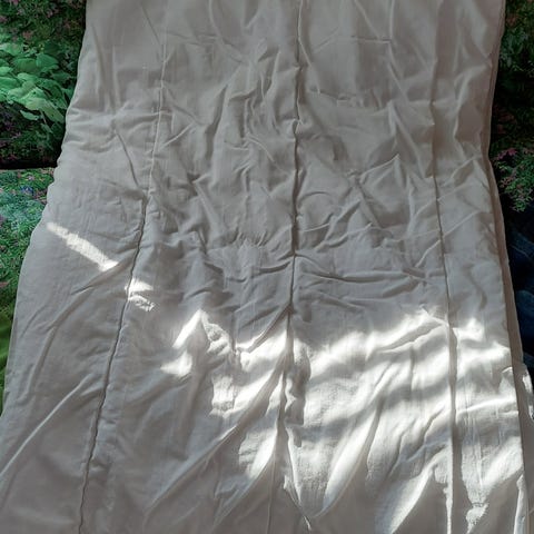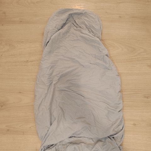 Pinnasänkyyn peitto, pussilakana, tyynyliina ja kaksi muotoon ommeltua aluslakanaa. Ehjä, siisti, tuoksuton setti.